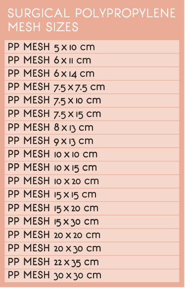 UNOMESH Monofilament Polypropylene Mesh is bio-compatible, nonabsorbable, sterile and porous material. Knitted to provide single directional elasticity while allowing the mesh to be cut for any shape without unravelling structure. UNOMESH has soft design, flexible, strong with permeable pore for use in Hernia repair as well as other soft tissue reinforcement. Ideal properties for high visibility & colonization. The weaving has ideal Mesh properties.